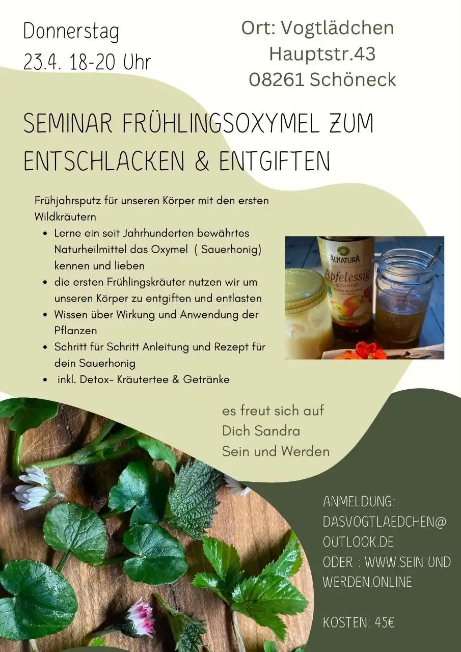 Seminar Frühlings-Oxymel – Wilde Naturapotheke – Entschlacken, Entgiften und Frühlingsfit mit Oxymel und Wildkräutern