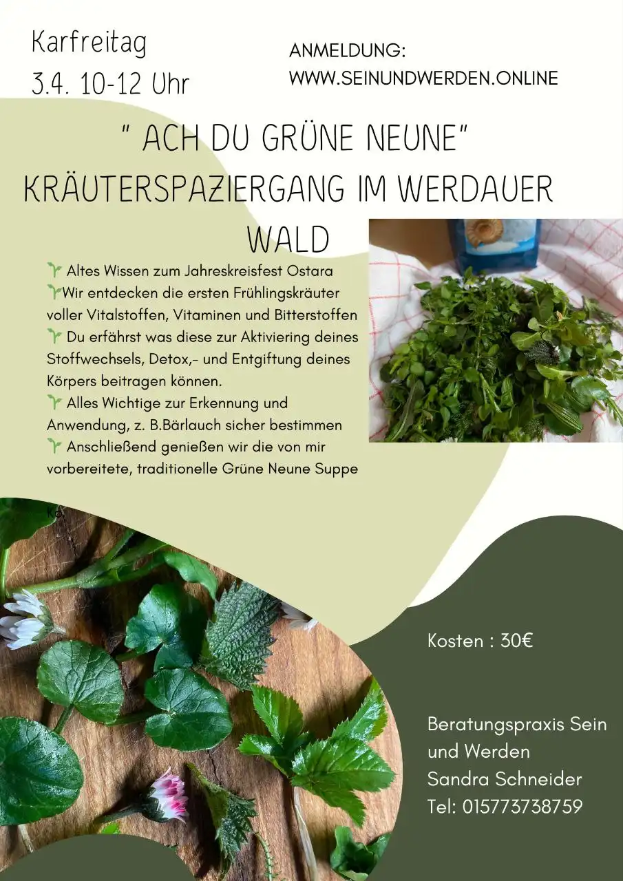 Mit grüner Kräuterkraft in den Frühling! Wir sammeln die 9 Wildkräuter, die in die traditionelle 9 Kräuter Suppe gehören und genießen im Anschluss da bin mir mitgebrachte Süppchen.
