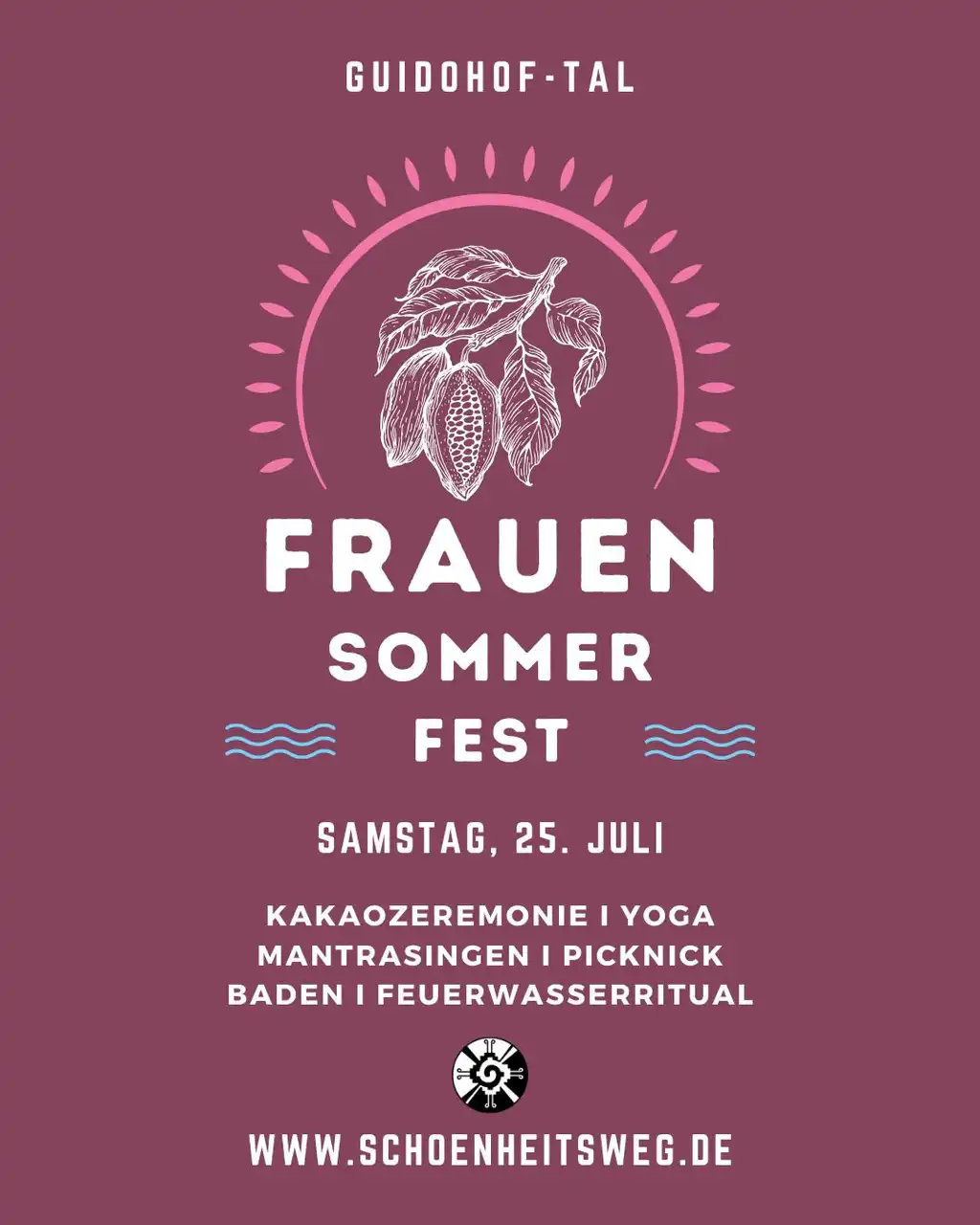 Zum 3. Mal findet das beliebte Frauen-Sommerfest im Guidohof-Tal statt: Kakaozeremonie & MantraSingen, Yoga, Baden im Bach, Trommeln, Feuerwasserritual. SEI DABEI!