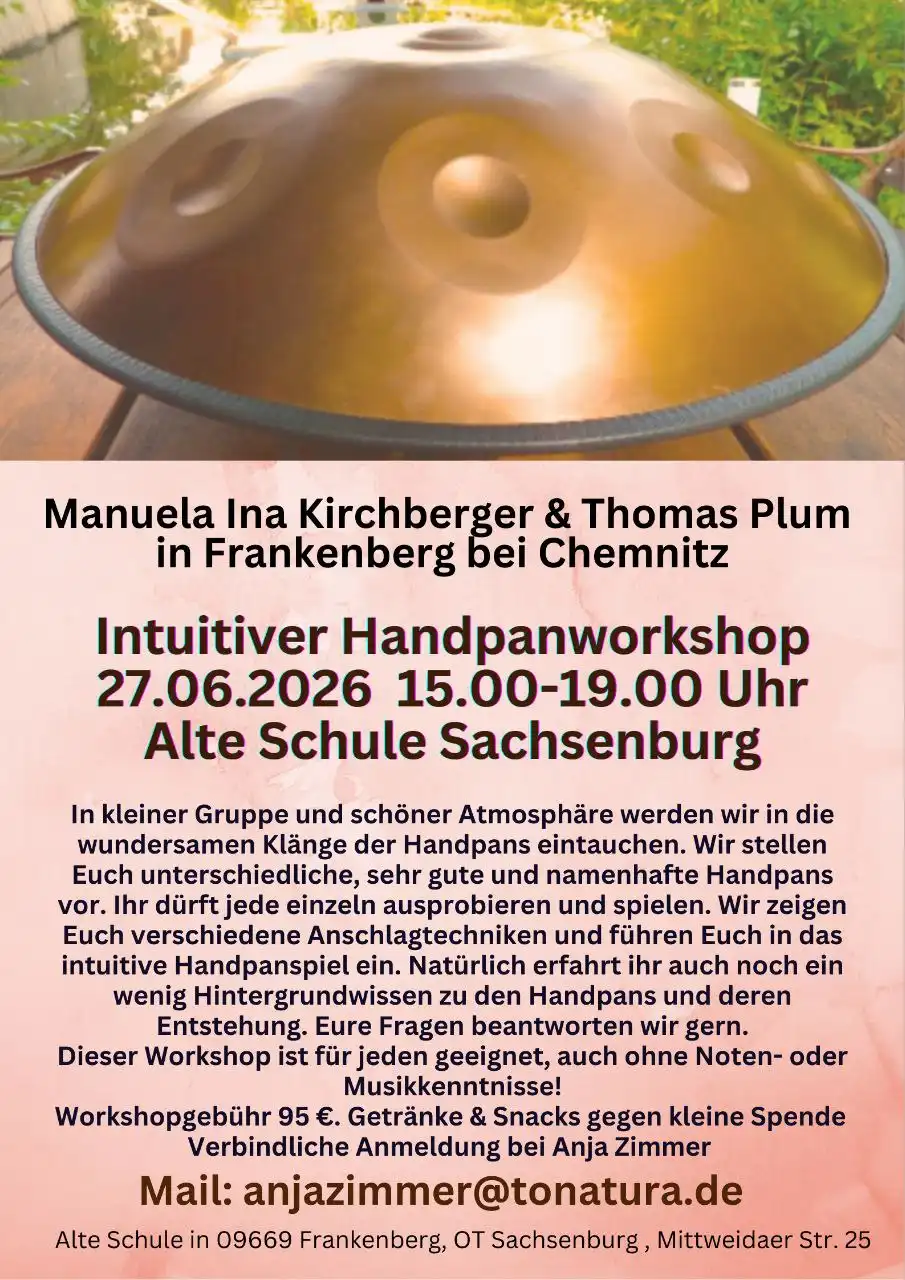 In kleiner Gruppe und schöner Atmosphäre tauchen wir in die wundersamen Klänge der Handpans ein. Wir stellen Euch unterschiedliche, sehr gute und namenhafte Handpans vor. Ihr dürft jede einzeln ausprobieren und spielen. Wir zeigen Euch verschiedene Anschlagtechniken und führen Euch in das intuitive Handpanspiel ein. Natürlich erfahrt ihr auch noch ein wenig Hintergrundwissen zu den Handpans und deren Entstehung. Eure Fragen beantworten wir gern.