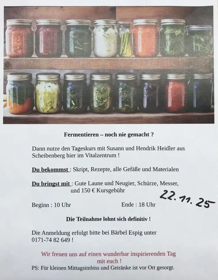 Dann nutze den Tageskurs mit Susann und Hendrik Heidler aus Scheibenberg hier im Vitalzentrum !