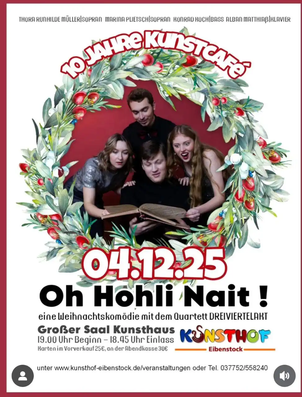 10 Jahre Kunstcafé – Oh Hohli Nait! eine Weihnachtskomödie mit dem Quartett DREIVIERTELAKT