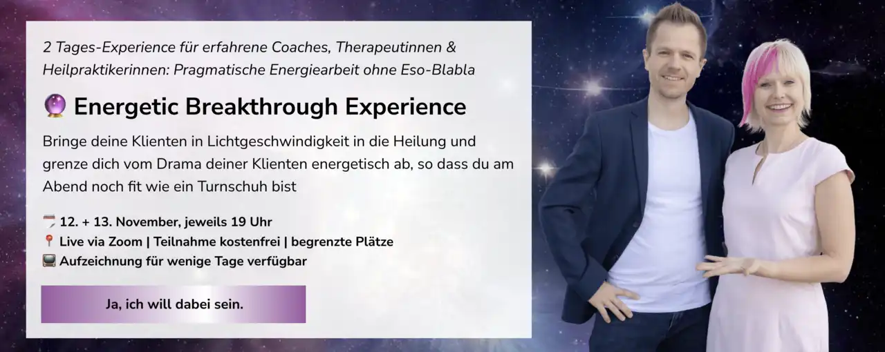 Energetic Breakthroug Experience – kostenloser 2 Abende-Live-Online-Workshop für Coaches, Therapeutinnen & Heilpraktikerinnen