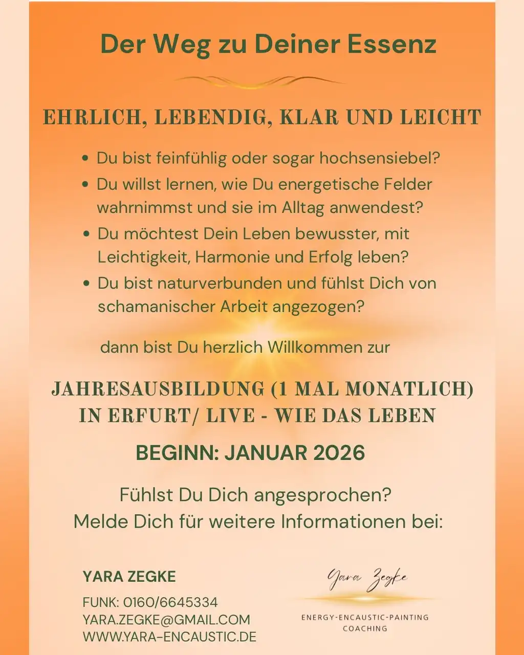 Jahresausbildung „Der Weg zu Deiner Essenz” – ehrlich, lebendig, klar und leicht