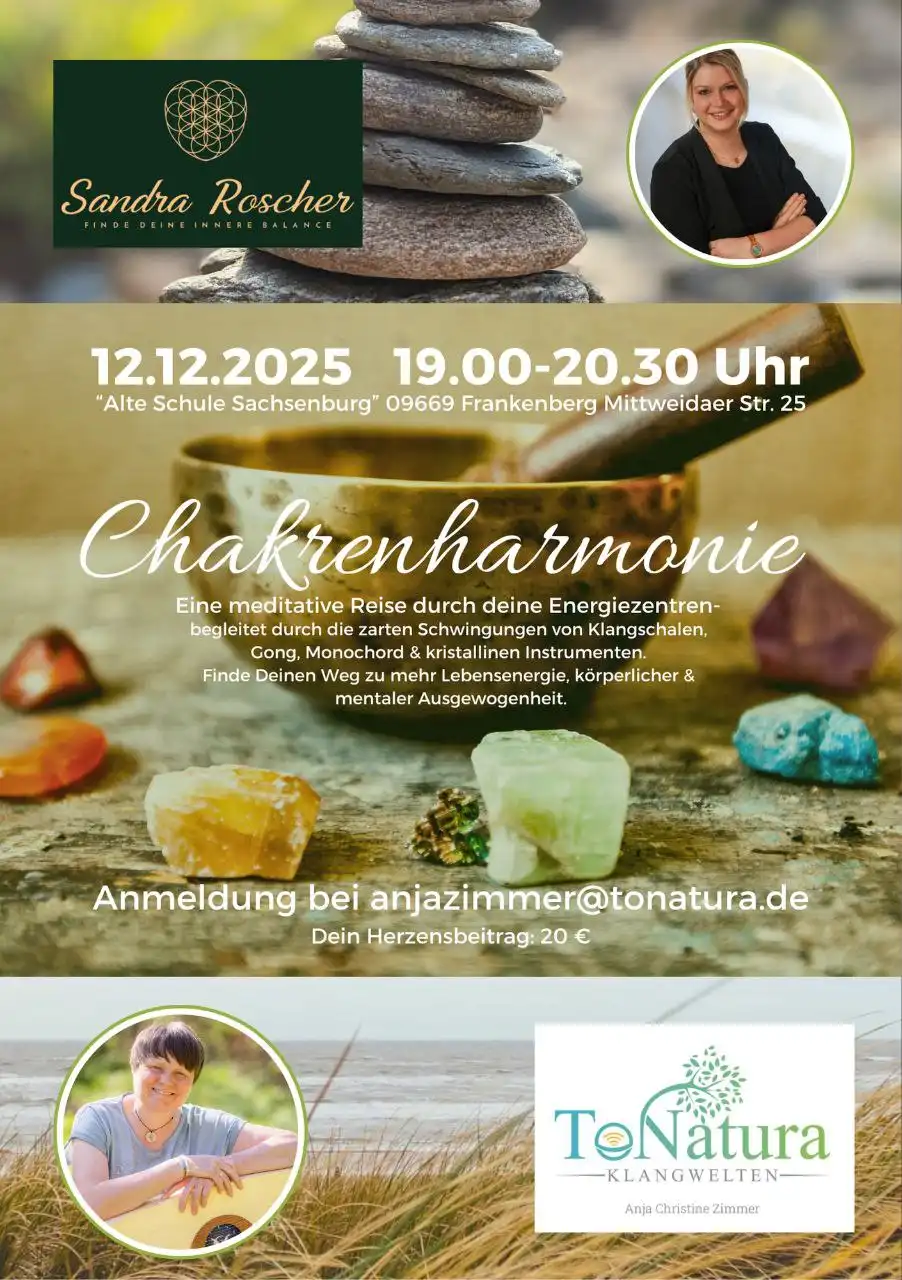 Anja Christine Zimmer · Tonatura Klangwelten: Praxis für Klangtherapie, Hypnose und ganzheitliches Coaching · 09669 Frankenberg / OT Sachsenburg Mittweidaer Str. 25 Tel. 0173 3693056 · anjazimmer@tonatura.de · www.tonatura.de