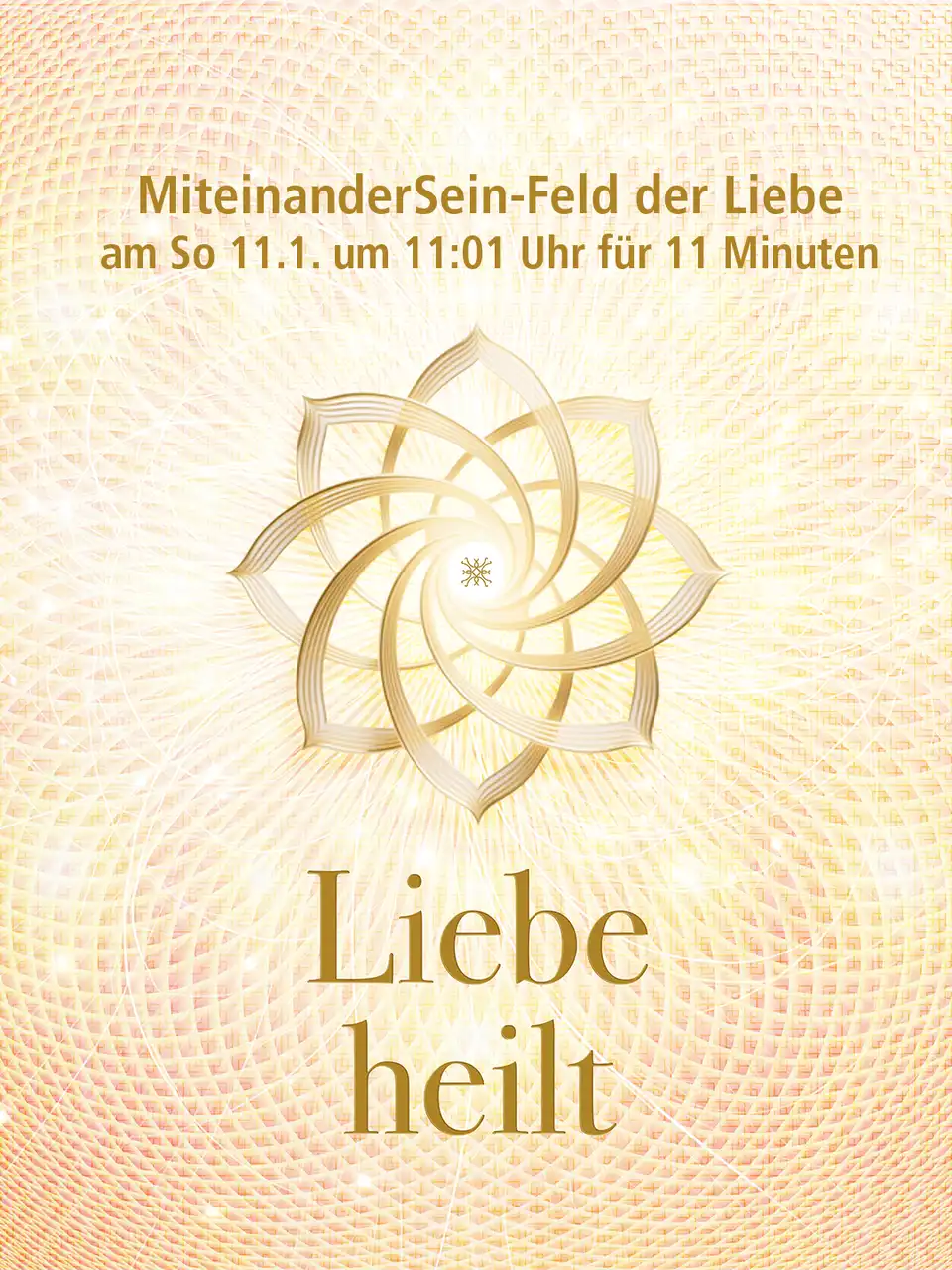 Am Sonntag, den 11.1.26, um 11:01 Uhr laden wir dich ein, für 11 Minuten mit uns im MiteinanderSein ein großes gemeinsames Feld der Liebe zu erschaffen..