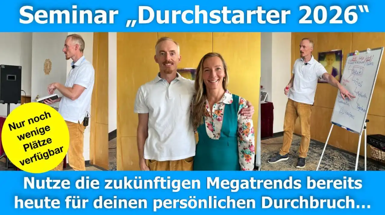 Raik und ich bieten dafür ein augenöffnendes Seminar an, dass in dieser Form neu ist. Denn wir geben dir Wissen aus dem aktuellen Zeitgeschehen mit. Die Megatrends von Morgen darfst du heute schon für dich nutzen. Es wird unzählige praktische Übungen geben, die dir Aufschluss über deine eigenen Fähigkeiten und deinen aktuellen Bewusstseinsstand vermitteln. Wir öffnen dir neue Horizonte für Geld, Bewusstsein, Weltanschauungsebenen und die Megatrends der Zukunft.