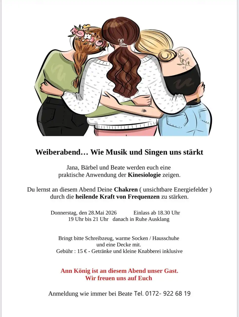 Wir freuen uns auf Euch Anmeldung wie immer bei Beate.