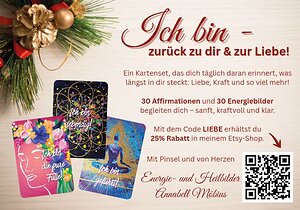 Das "Ich bin" Affirmations-Karten-Set besteht aus 30 handgemalten Energiebildern, die ich in Verbindung mit meiner medialen Arbeit geschaffen habe. Jede Karte trägt eine „Ich bin“-Affirmation, die dich an deine göttliche Essenz…