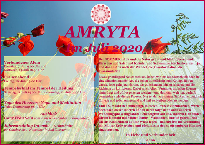 Jana Münzner · AMRYTA – Zentrum für ganzheitliche Entwicklung · Verbundener Atem, Reinkarnationsanalyse, Kundalini-Yoga, astrologische und psychologische Beratung, Frauengruppen · Karlsbader Straße 2A, Schwarzenberg · Tel. 0162 7486264 · www.amryta.de