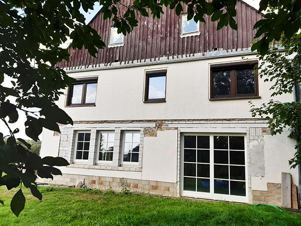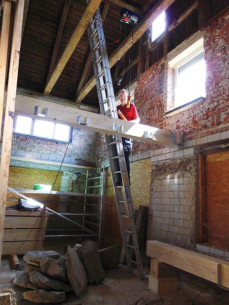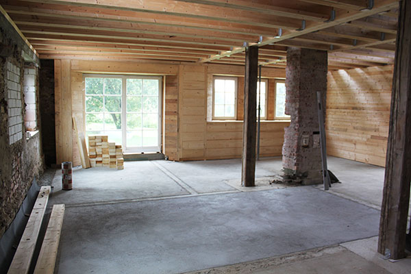 Wir hatten Glück und im Mai 2015 war Notartermin. Seit dem sind wir – größtenteils in alleiniger Fleißarbeit auf der Grundlage professioneller Planung – dabei, das Haupthaus in der Form zu sanieren, dass wir nach einem umfangreichen Zaunbau, welcher den ersten Sommer beansprucht hat, das zweite und dritte Jahr aussschließlich entkernt und herausgerissen haben, Böden abgeschachtet, riesige Feldsteine hinaus befördert, alle Decken, Böden, Wände entfernt, Fenster aus- und neue eingebaut usw. Danach konnte der Aufbau bzw. Innenausbau beginnen und dauert bis heute an.