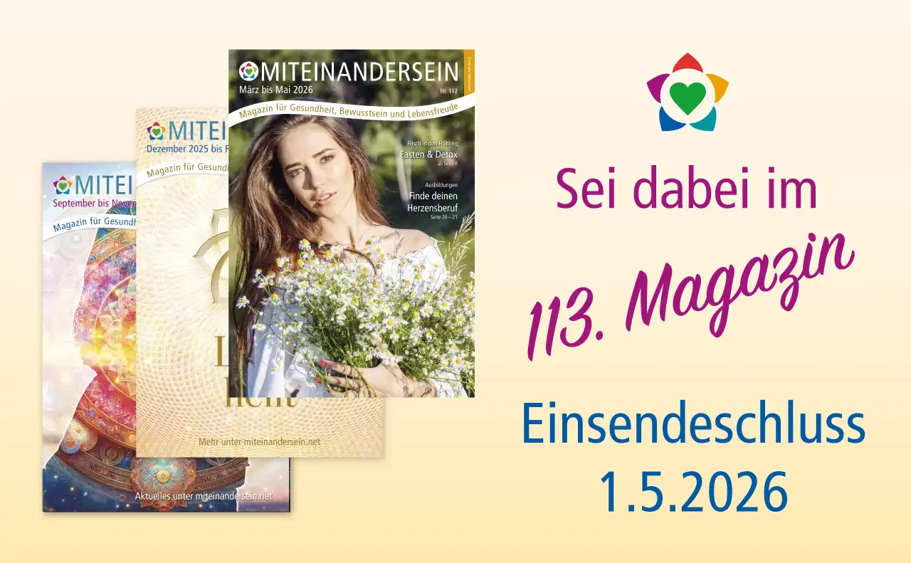 voller Freude und Inspiration starten wir die Vorbereitungen unseres nächsten MITEINANDERSEIN-Magazins für den Sommer (Juni bis August 2026). Das Thema der 113. Ausgabe lautet: „Karma”.